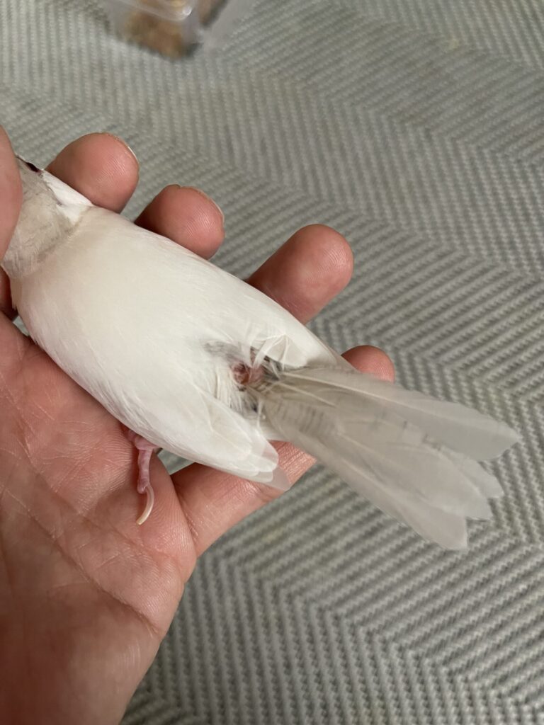 うちではクリームイノ文鳥のきいちゃんが尾脂腺が腫れています。気が付いたら結構腫れていました。でも発赤や熱感など感染兆候は無かったので様子を見ています。病院行って針刺してもらっても感染する可能性もあるので、病院が必ず良いって訳ではないと思います。